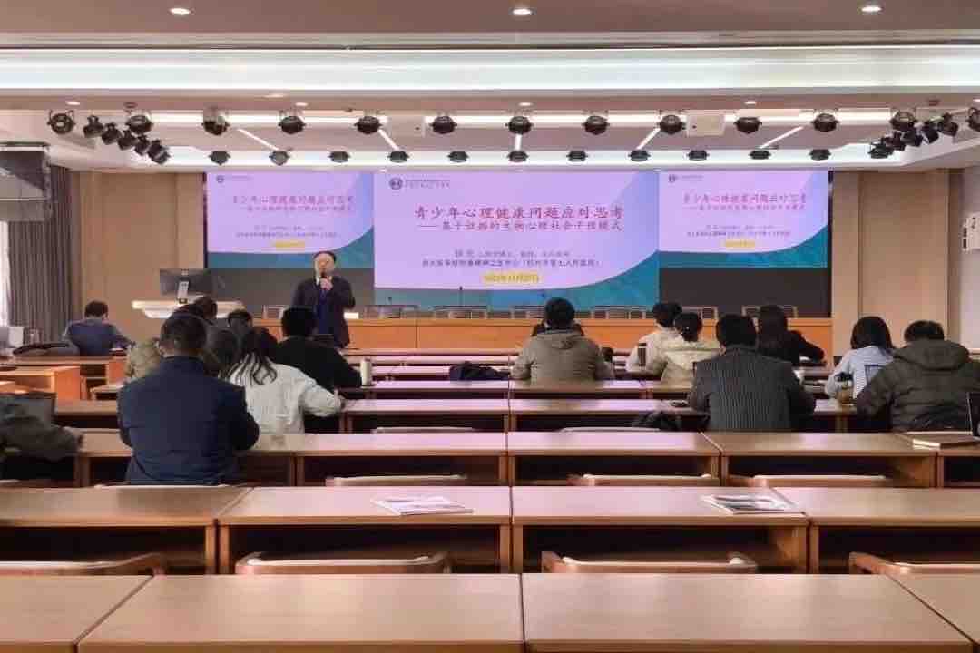 11月27日上午,研修班全体成员来到了西湖区教育发展研究院,聆听了杭州市第七人民医院骆宏教授《青少年心理健康问题应对思考》的讲座。骆教授从近期成立的全国学生心理健康工作咨询委员会的五项职责说起,解释了当前青少年学生心理健康面临的一些主要问题。指出校园心理危机已经变得“常态化”。骆教授认为亲子、师生、生生间的关系型创伤是学生心理健康发病的主要影响因素。讲座最后,骆教授为大家介绍了杭七院曾经开展的家校医社“低强度心理干预”联合项目,阐释了当前国外青少年心理健康服务的总体流程,指出医教融合,跨学科跨理论地开展“竞争性合作”是未来的趋势。