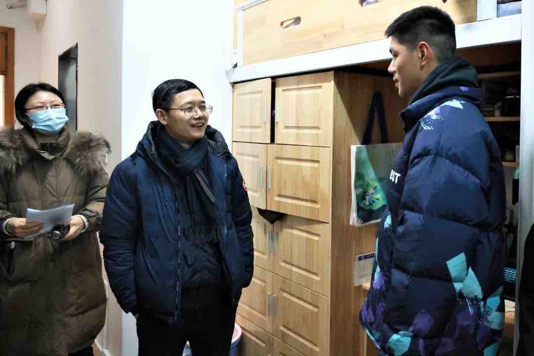 寒潮袭来,气温骤降。李安贴心叮嘱寝室的同学们“最近降温严重,同学们要及时增添衣服,注意保暖,防止感冒”。聊到同学们所学的专业,李安表示,科学教育专业知识覆盖面广,前景广阔,勉励同学们一步一个脚印,夯实基础,勤于钻研,勇于实践,扎牢专业根基,练就过硬本领 。