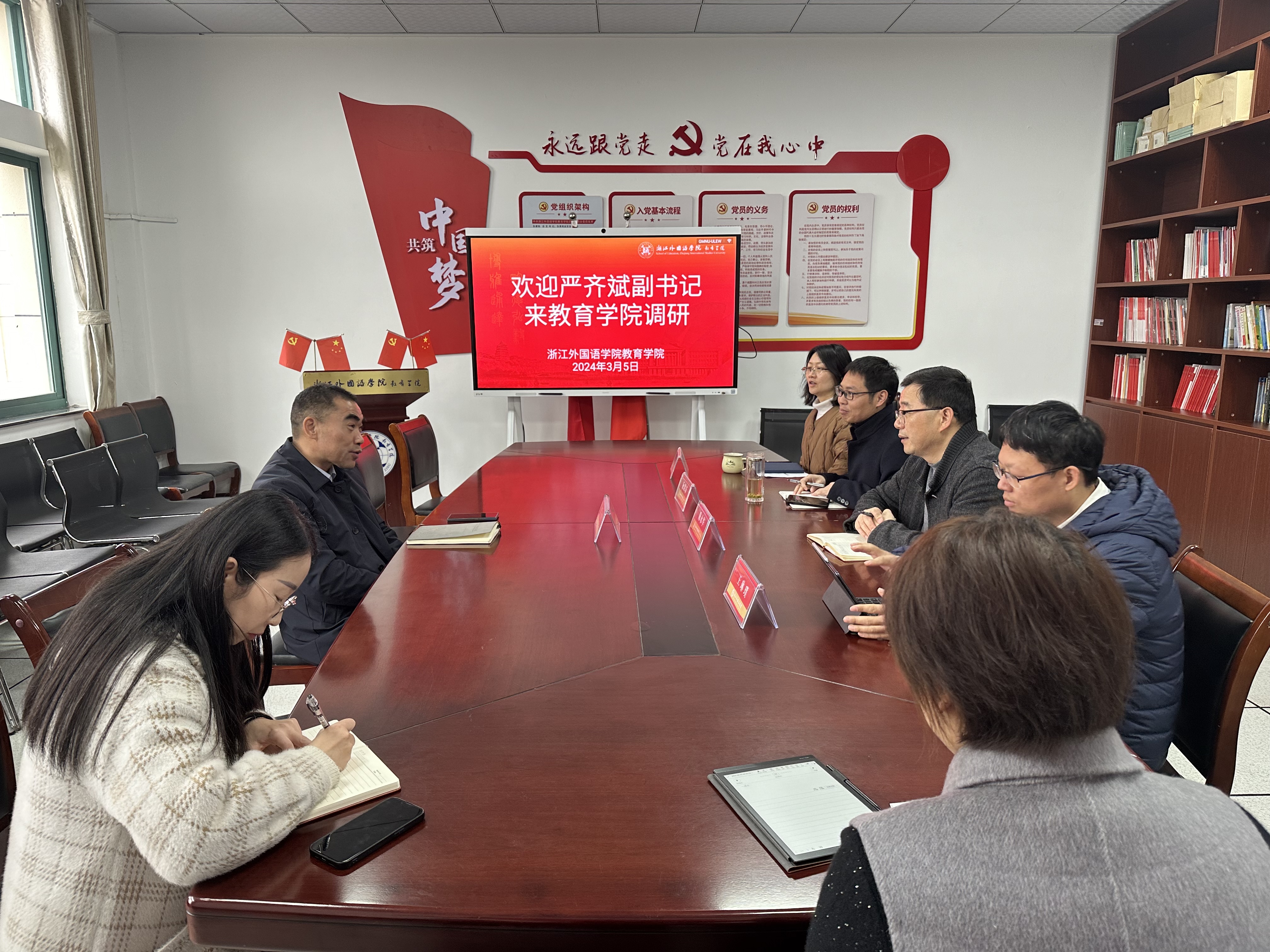 校党委副书记严齐斌认真听取了学院相关情况汇报,充分肯定了学院取得的成绩,并对下一步工作进行了指导。要求学院围绕学校“三地四域”战略布局“提档升级”,提高站位,靠前谋划,同频共振发展;增强学院内部凝聚力、向心力,提升核心竞争力,做好传承驱动工作;持续加强党风廉政建设,不断推进党建与业务相融合,调动全院教职工积极性,将党建工作与业务工作、学科发展与学校发展、教师发展与学院发展等深度融合,不断增强教职工获得感与幸福感。