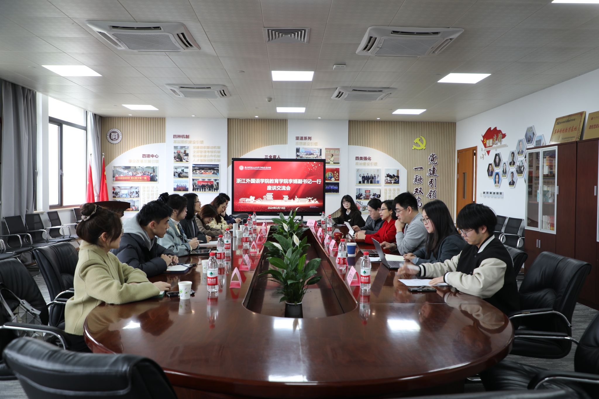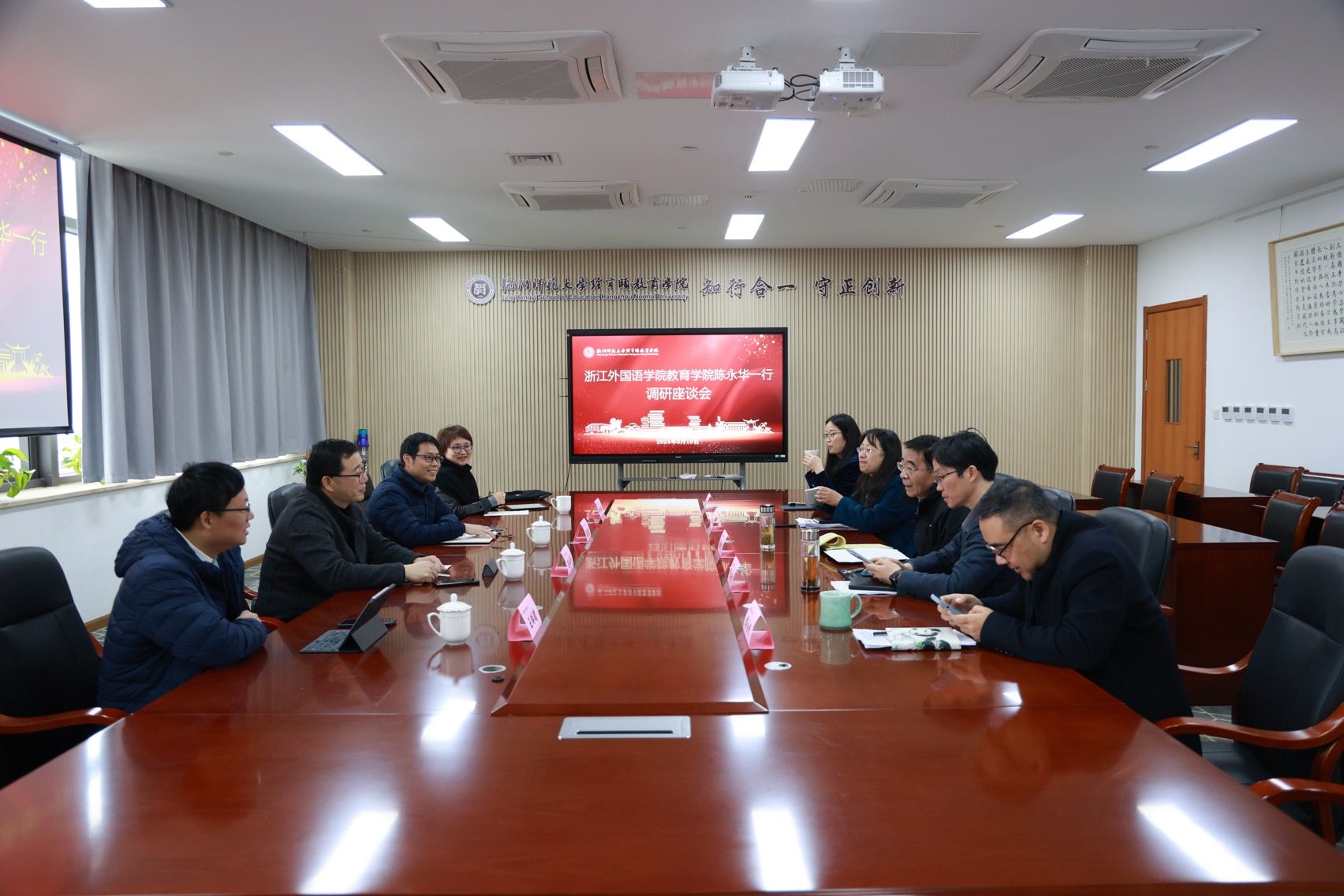 对本次来访表示热烈欢迎,名誉院长张斌贤、院长严从根、党委书记蒋璐敏、副院长蒋永贵、副院长许建美、党委副书记沈嫣及学工团队热情接待了教院一行,并共同参与了交流会。