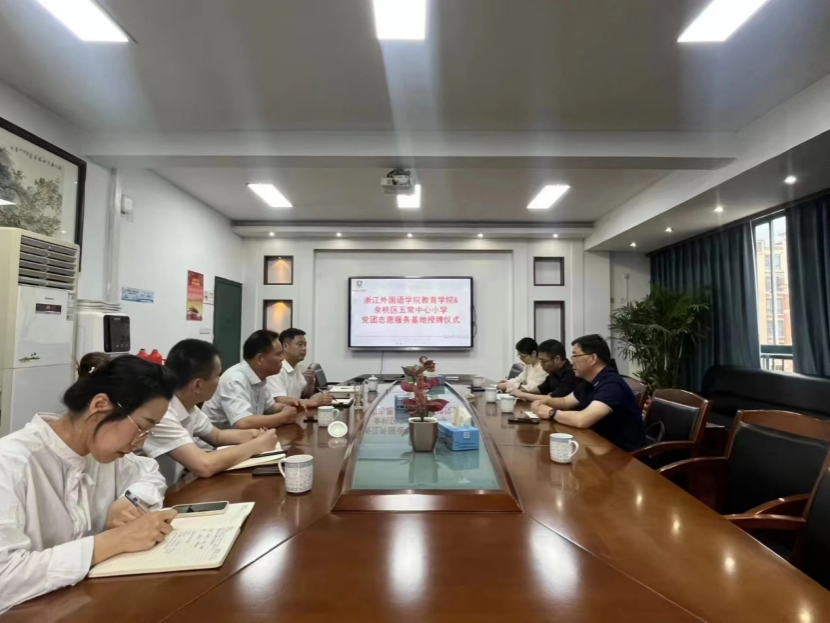 院长陈永华、党总支书记阮建苗一行带队前往余杭区五常中心小学开展调研活动。五常中心小学校长陶彦敏、党总支书记章明华、原杭州师范大学经亨颐学院院长郑生勇,以及双方学校相关教师代表等参加调研座谈。