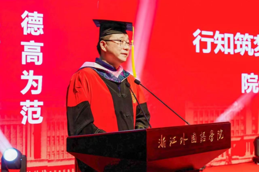 “凡是过往,皆为序章”,前途漫漫,但一个新的时代终将会到来,终将由你们去创造。希望今天的毕业典礼既是你四年浙外生活的精华浓缩,更是未来生活的一个支点,精神的支点。
