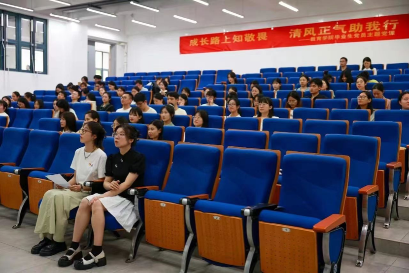 邱卫东教授结合党纪学习教育,从“明确新的人生旅途”与“教育家精神”两个维度,深入浅出地讲述毕业生应当意识到新的人生旅途的开始,要跳出舒适区直面挑战,弘扬教育家精神,成长为一个有担当、守底线、知敬畏的教师。此外,他还向毕业生党员提出殷切希望与嘱托,引导毕业生党员守初心、担使命,充分发挥先锋模范作用,在新的岗位中实现自己的理想和抱负,以实际行动和青春力量让党徽在胸前熠熠闪光。