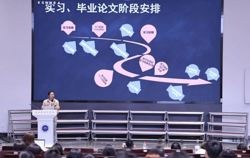 此后,教育学系主任周全老师就毕业论文的写作进行了专题动员,他以一首《毕业论文之歌》说尽了毕业论文的方方面面,并特别强调了学术诚信的重要性。集中动员之后,各专业由所在专业的系主任就实习与论文的具体要求进行了分专业的说明和动员。