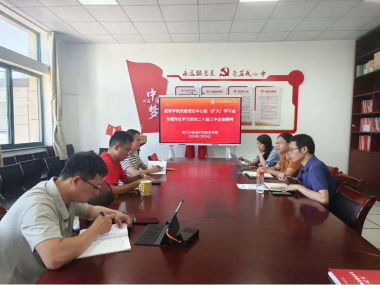 召开党委理论学习中心组(扩大)学习会,传达学习党的二十届三中全会精神以及上级相关会议精神。我院党政班子、理论学习中心组成员、党支部书记、系主任等参加了学习会。会议采取线上线下相结合的方式,由党委书记阮建苗主持。