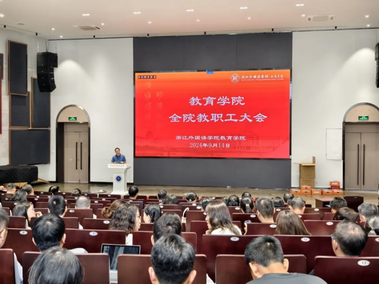 夏暑未尽,时序已秋。9月14日下午,我院召开新学期全体教职工大会,学习贯彻党的二十届三中全会精神和全国教育大会精神,通报新学期各项工作改革思路和具体举措。弘扬教育家精神,不断推进学院工作高质量发展。会议由党委书记阮建苗主持。