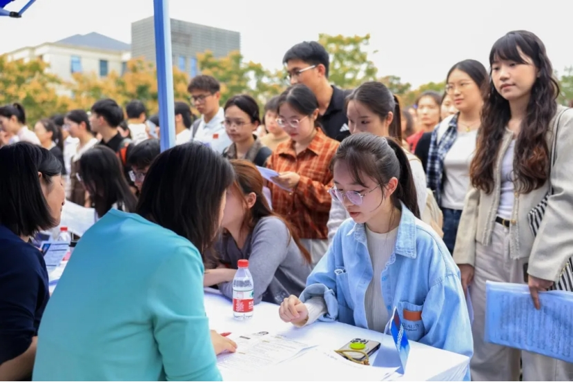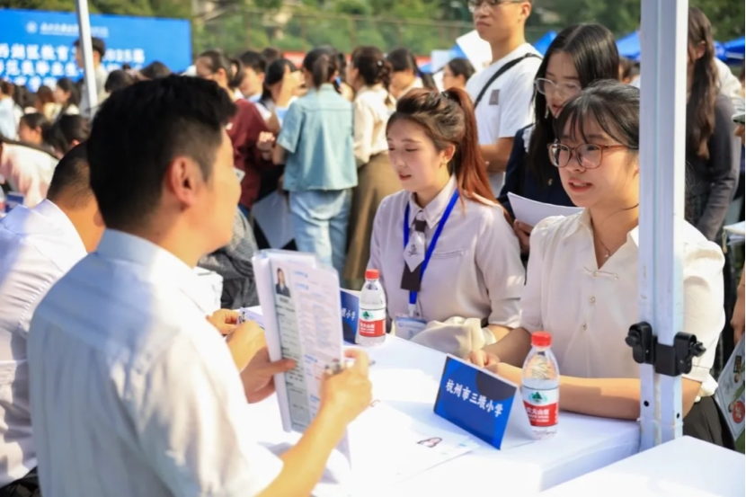 “我根据中小学数学老师的招聘要求,准备了两种简历,里面的内容会更有针对性。”看着招聘会现场人头攒动,陈同学表示。10月12日,杭州市西湖区教育系统2025届师范类毕业生专场招聘会暨唐人街影院