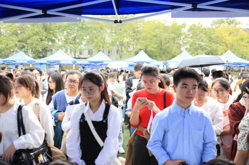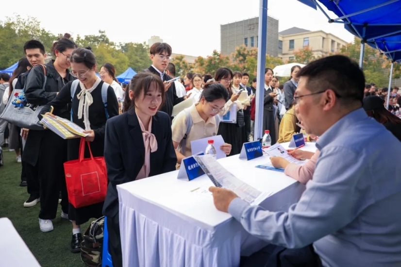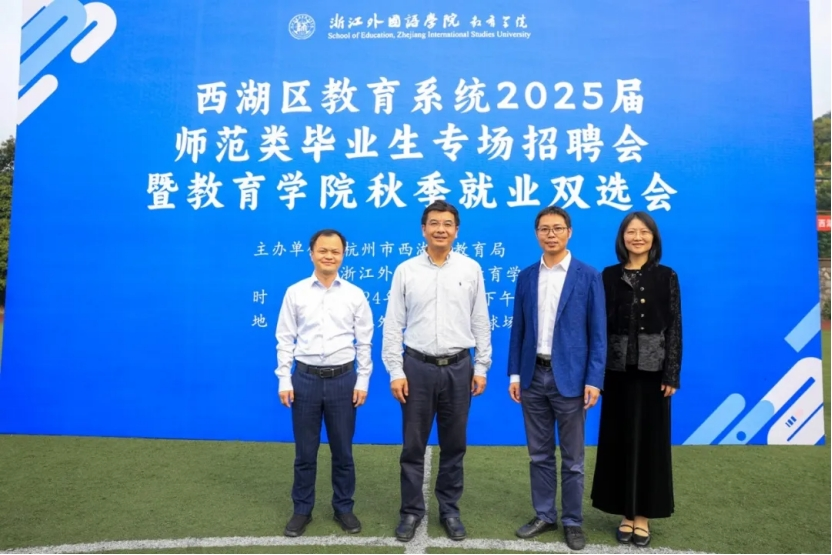秋季就业双选会在学校足球场举行。招聘会邀请了西湖区20余家中小学、幼儿园来校,提供多个岗位,现场热烈,吸引了500余名校内外学生参加。
