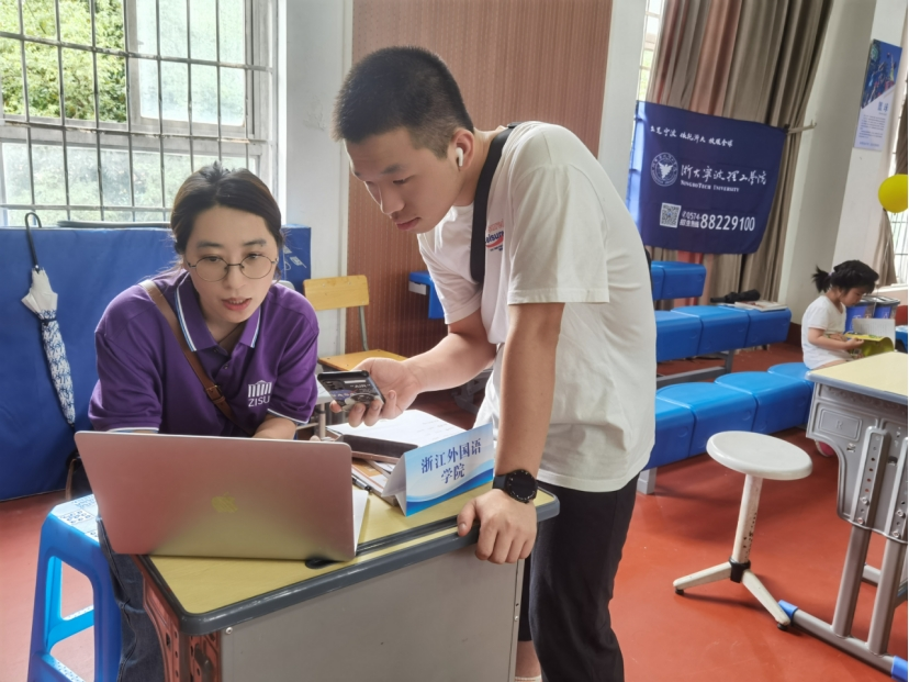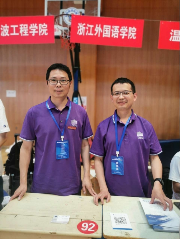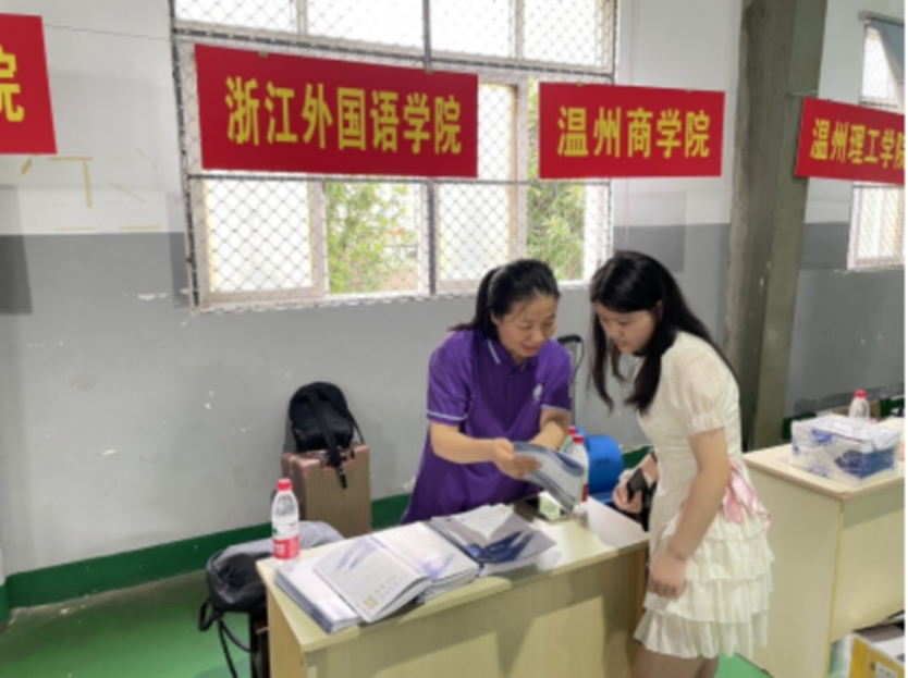 6月22日,学院党委书记阮建苗、科教系系主任冯启在丽水学院招生