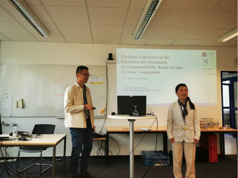 团队负责人吴卫东教授在平行论坛中做了题为“重建教学模式:结合认知与情感的方式”的学术报告,指出知情交融的“五维变量”教学模式的实现需要教师群体的实践力量,即需要教师不断自驱型的成长,实现从学科人到教育人身份的重构,实现从固定型思维向成长型思维的转变以及社会情感能力的提升。胡敏老师和高原老师在平行论坛中做了题为“基于中德合作的可持续发展教育的浙江经验”的学术报告,指出浙江省在同德国合作开展35年之久的教师和校长培训的过程中衍生出了可持续发展教育的合作议题,并且多年以来持续深耕经营,在取得多方面成就的同时,也初步凝练出一条“基于国际合作的大中小学可持续发展教育一体化”的经验模式。