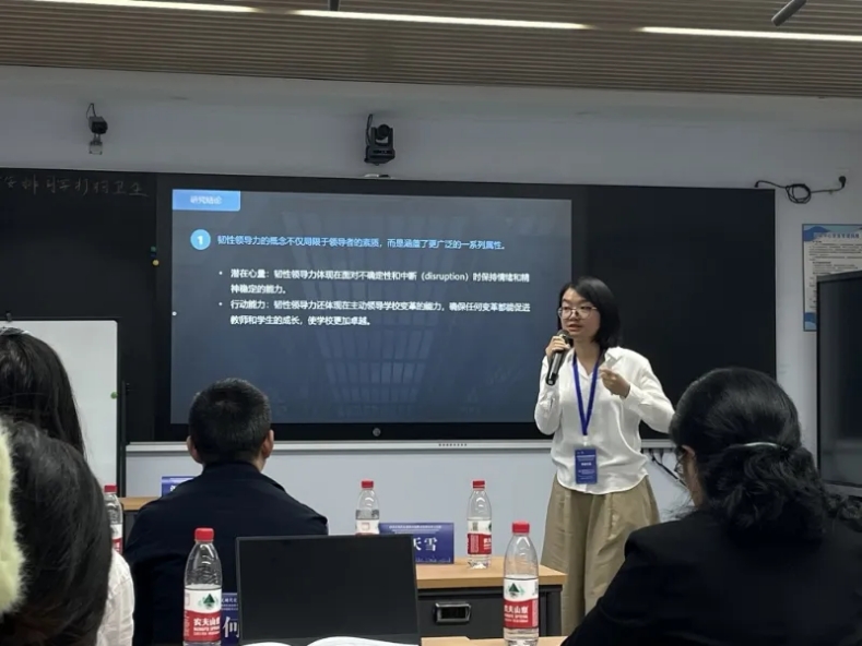 在教育家精神引领的高质量教师与校长队伍建设研究分论坛上,何菲作题为《韧性领导力与教育高质量发展:浙江幼儿园校长的个案研究》的报告,展示了浙江省三个处于挑战环境中的幼儿园园长的质性研究结果,重点探讨了韧性领导力的来源、策略和特征。