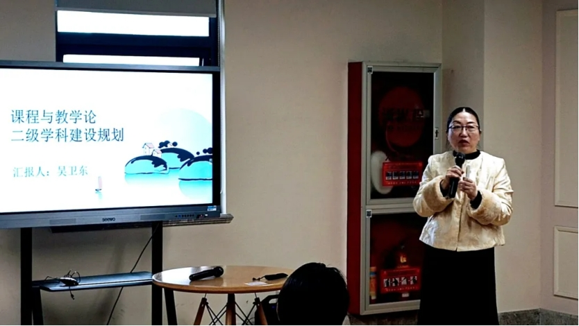 执行院长袁晖光教授介绍了学院学科建设规划,强调坚持 “三个学科”“三个逻辑”的重要性,阐述了将所有学科纳入区域教育治理框架的合理性与必要性,并以此为基础凝练和打造学院的学科特色。她指出,课程与教学论二级学科结构完整、年龄合理、成果丰硕,未来所有老师都需要思考本体学科在教育治理框架中的融入方式,与学院共同成长与发展。