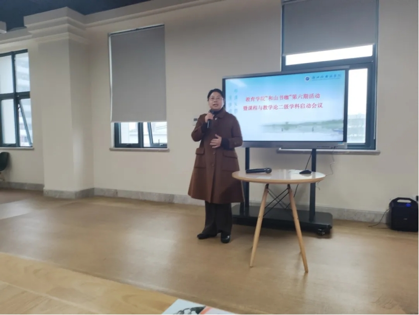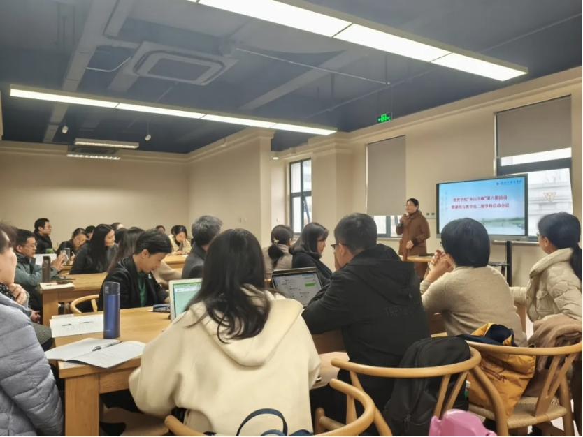 “和山书咖”第六期活动暨课程与教学论二级学科启动会议在弘文馆 4 楼 D 区艺术书库顺利召开。学院执行院长袁晖光教授、二级学科召集人吴卫东教授、四个方向执行人以及学科教师30余人共同参与会议。学院副院长吴晓副教授主持会议。本次会议聚焦学科建设,旨在共商发展策略与路径,推动学科高质量发展。