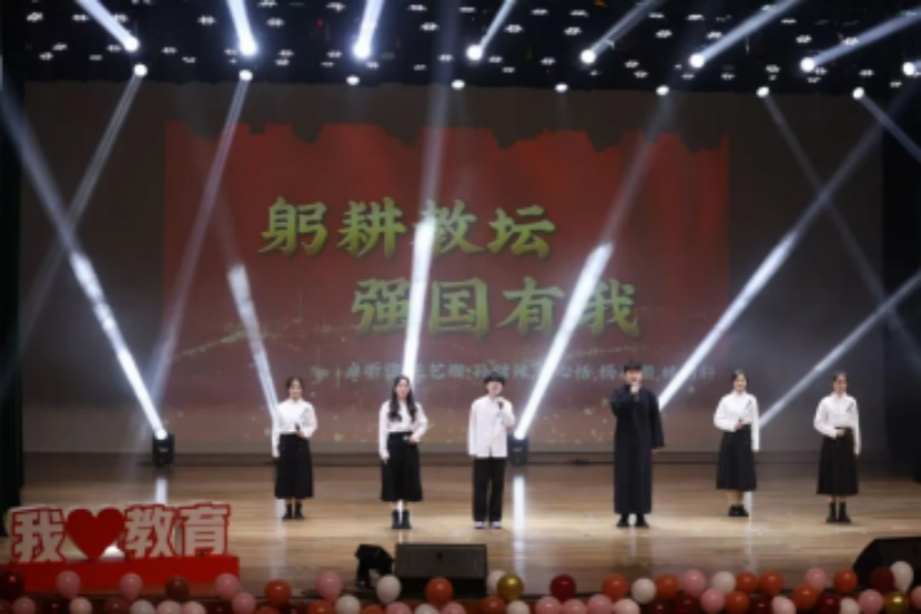 舒缓的音乐响起,朗诵者的眼神坚毅、声音真挚,传递着对教育事业的无尽希望与热爱。