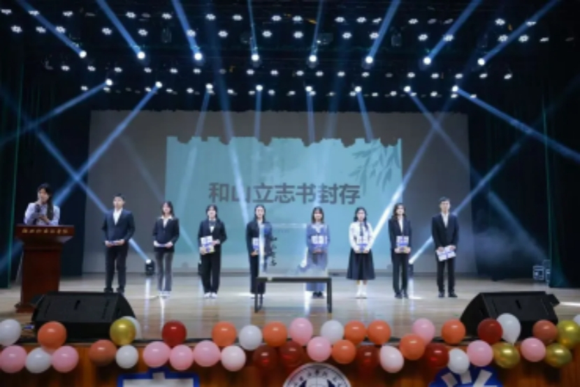 在和山立志环节,教院学子齐声宣誓,表达着勇敢探索未知、追求卓越的信心。随后,他们将精心书写的立志书郑重地封存入瓶中,这些承载着希望与憧憬的纸张,将被时光见证。