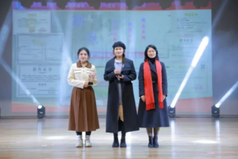 21小教4班王婧和22数学1班陈曦作为学生代表,分享了自己参与师范生技能大赛和学科竞赛相关的经历,鼓励大家在未来求学道路上,不惧艰苦,勇于突破自我。