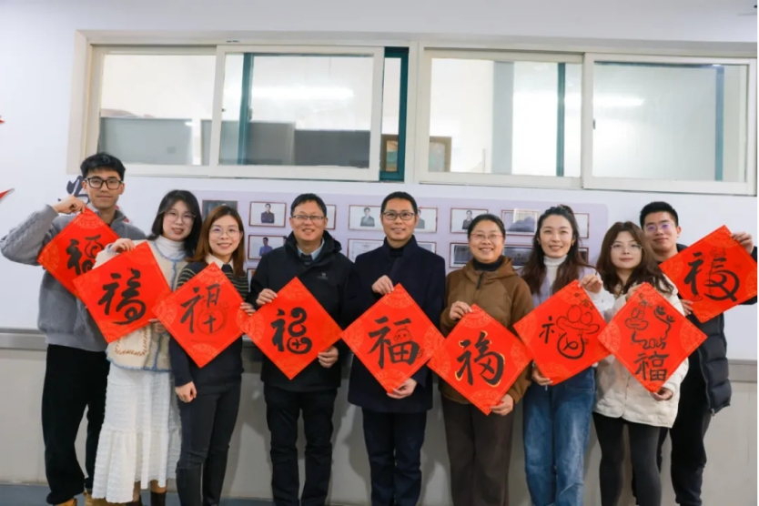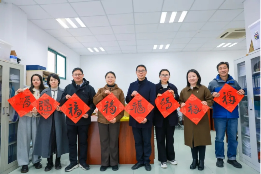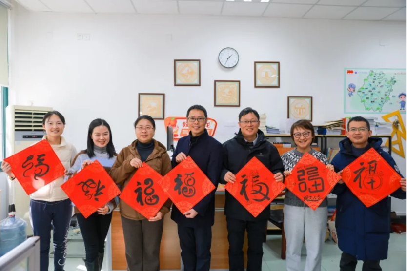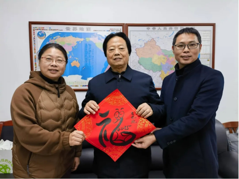 学院党委书记阮建苗、执行院长袁晖光携领导班子成员走进各系(部)教师办公室,为教职工送上学子书写饱含祝福的“福”字,共迎元旦佳节。