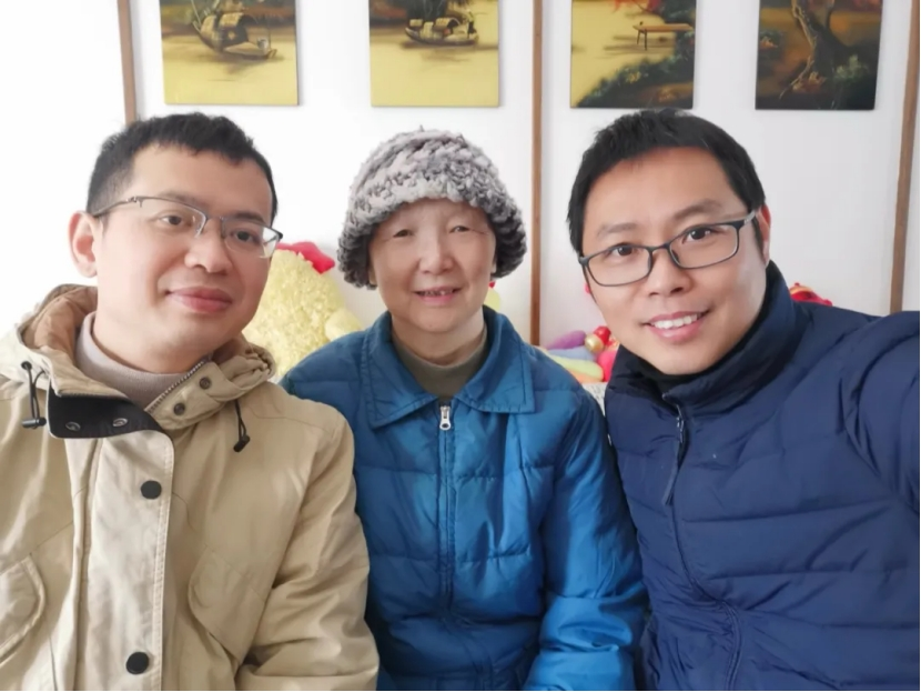 院党委书记阮建苗、科教系系主任冯启慰问严欣澂老师