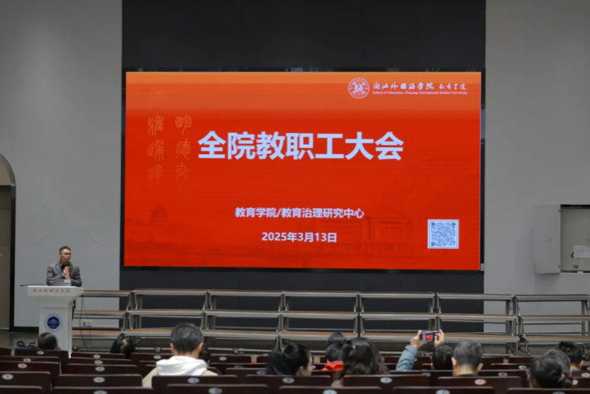 袁晖光在会上传达了浙外 2025 年新春第一会的精神。校领导在讲话中明确了学校 “办国际知名以服务新型国际关系为特色的外语名校” 的发展目标,强调在数字化时代背景下,各学院要积极推动学科建设、人才培养、科研创新等工作的高质量发展,提升学校整体竞争力,为学校长远发展谋篇布局。