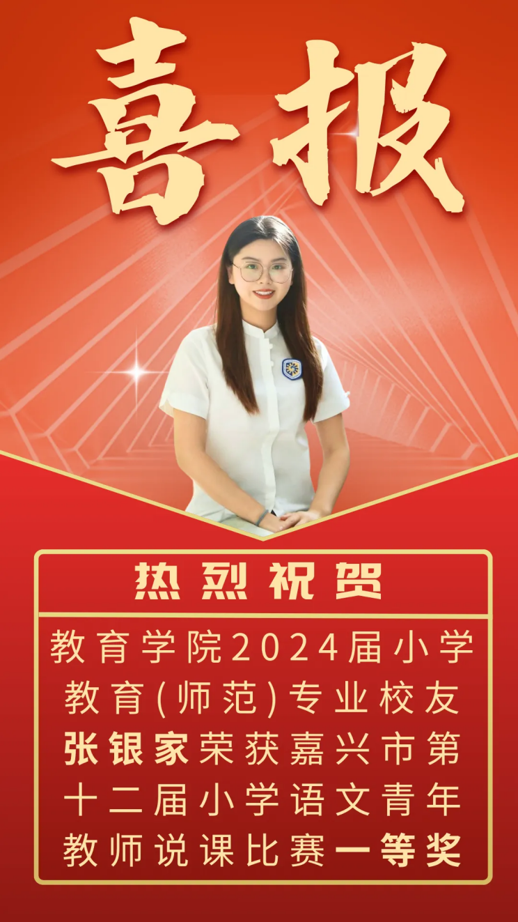 唐人街影院 校友张银家荣获嘉兴市第十二届小学语文青年教师说课比赛一等奖!