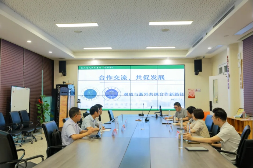 党委书记阮建苗,数学系系主任任光震,科教系系主任冯启,2026届辅导员季康松走访杭州观成实验学校,与校长李洁,副校长黄臻,副校长董唯佳,办公室主任赵彦杰,教科室主任、数学系2012届校友景昱波进行洽谈交流。