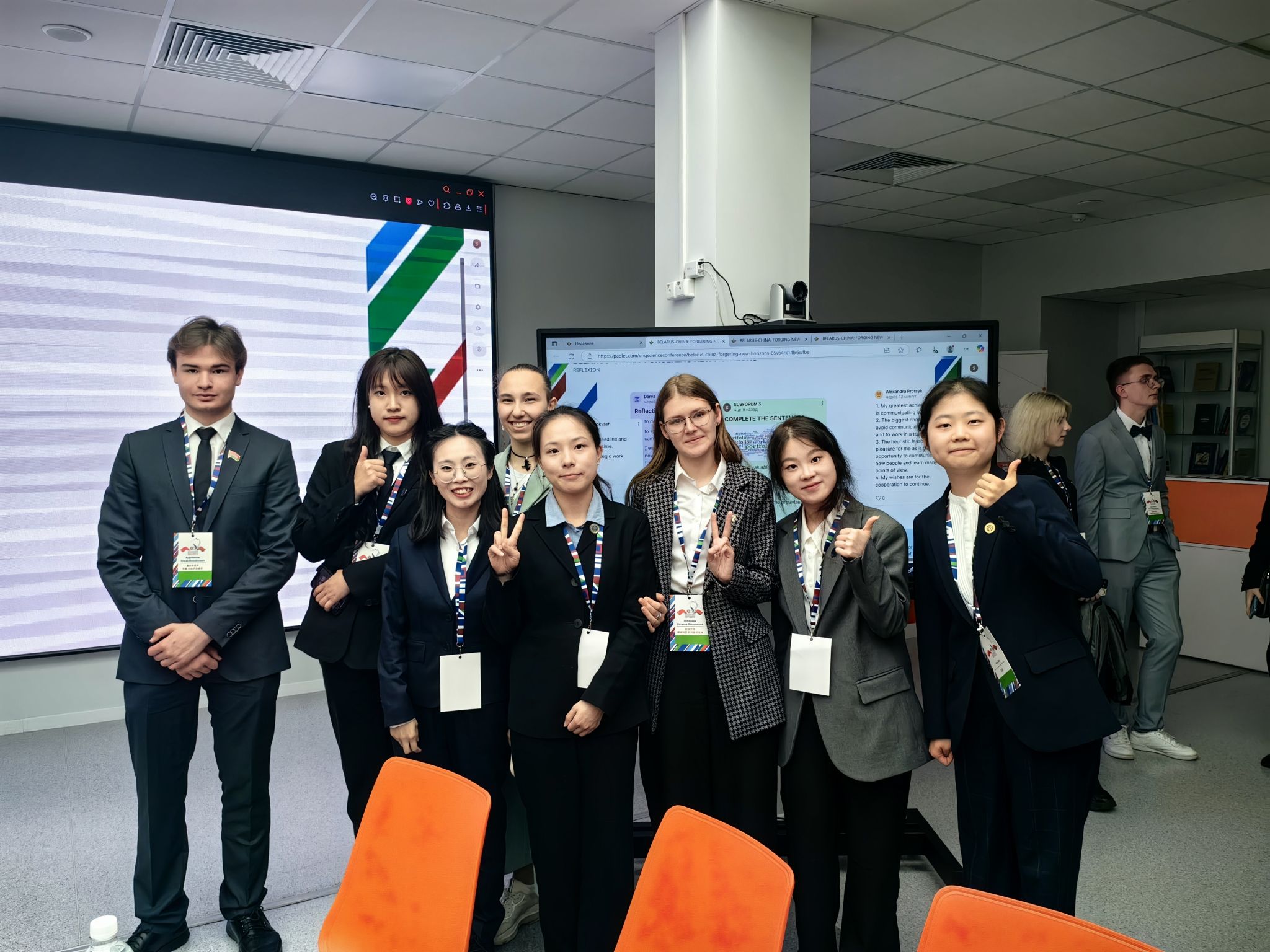 在优秀青年对话平行分论坛中,来自中国十所高校的学生代表与白俄罗斯国立大学学子展开了深入交流。交流过程中,我院学生代表充分发挥自身优势,通过数据检索,收集到了中白以 “一带一路” 为桥梁在医疗与健康领域开展合作的相关论据,为团队成果展示提供了有力支撑,展现了我院学子的专业素养与担当。
