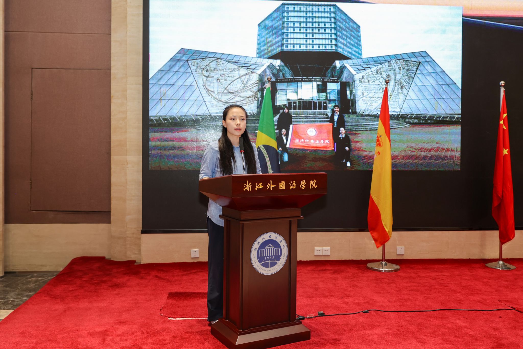 在我校首次举办的国际暑期学校欢迎仪式上,我院的学生代表作为发言者,向来自俄罗斯、西班牙等多个国家的青年展示了团队在此次论坛中的成果以及交流心得,进一步扩大了交流成果的影响力。