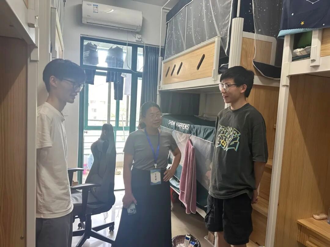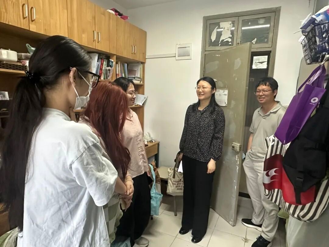 执行院长袁晖光、副院长王琳璞、党委副书记李娟及辅导员俞贝一行走访雅仪1、雅仪4、雅正6、雅正8等联系学生宿舍,为同学们送去学院的深切关怀,并与同学们亲切交流。“期末考发挥得怎么样呀”“未来的职业规划开始准备了吗”“留校参加比赛,一定要把安全放在第一位”,一句句暖心询问,让教院学子在夏日里真切感受到了家一般的温暖与关怀。