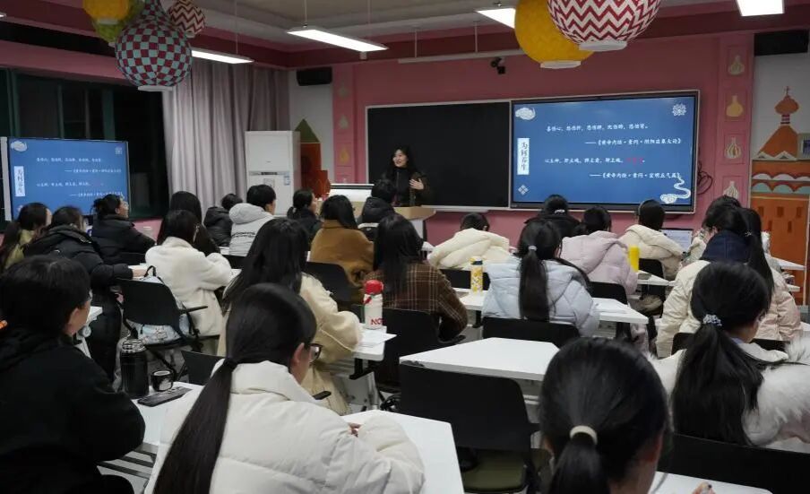 教授、语文特级教师陈丹老师讲授,她以“养生”话题切入,从“是什么、为什么、如何做”三方面为同学们展开了轻松而又深刻的讲解。