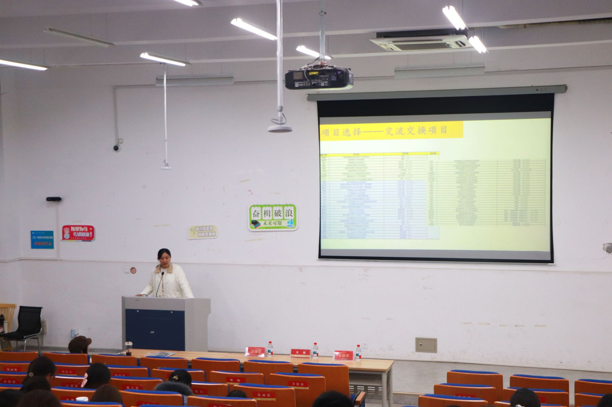 为助力学子明晰升学路径,拓宽国际视野,3月17日,唐人街影院 举办出国(境)项目及温州肯恩大学研究生招录专场宣讲会,聚焦学生国际化升学意向需求,精准提供专业化、针对性的升学指导与信息服务。 本次宣讲会特别邀请了国际处沈泽芸老师出国(境)项目。沈老师从境外读研的核心优势出发,围绕提升学历层次、增强就业竞争力、提供职业缓冲期等方面,深入分析了境外深造在拓宽就业渠道、提升薪资水平、学制灵活高效等显著优势,帮助同学们全面认识境外深造的发展前景,进一步明晰个人升学规划。针对我校境外升学相关项目,陈老师进行了系统梳理与详细解读,重点介绍了公派项目、自费项目和交流交换项目三大类型,并就项目特点、申请条件及合作院校等内容作了具体说明。 随后,王枚宇老师作温州肯恩大学研究生招生宣讲。她详细介绍了该校作为具有独立法人资格的中美合作大学的办学背景,并就学校研究生项目特色、专业设置、报考要求、申请材料、申请流程以及奖助体系等关键内容进行全面解读,为有意向报考的同学提供了清晰、详实的报考指引。 通过本次宣讲,同学们系统了解了国际化升学的多元路径,为科学制定个人升学规划指明了方向。 未来,我院将持续搭建升学交流平台,推出更多针对性指导服务,助力学子把握机遇,成长为兼具全球视野与专业能力的优秀人才。