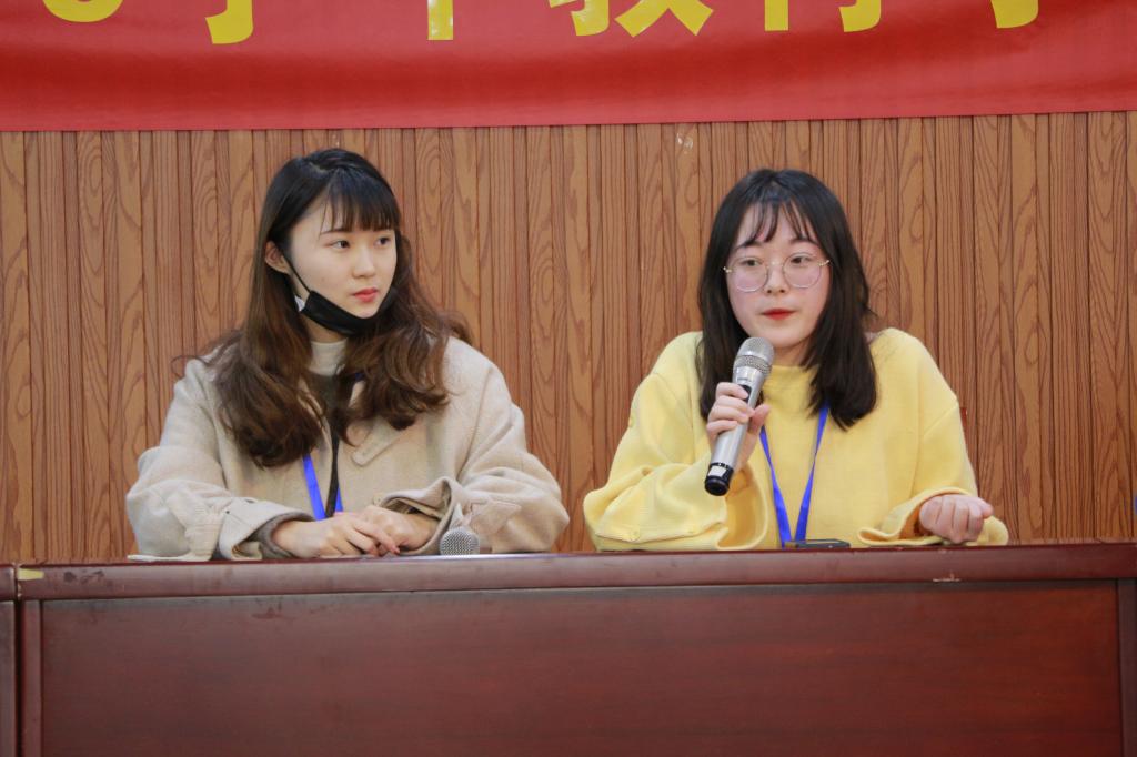 大会的最后由毕莹致辞总结,她以几个小故事的形式对大家提出了几点希望与要求。第一,“眼中有光,心中有梦”,我们要始终保持对梦想的热忱,并主动完善自己以追求更高的成就;第二,要懂得主动参与工作,我们要积极参与到部门的工作之中与投入到学院的建设之中;第三,学会合作共赢,学院的活动应当公开发布,举全院之力来开展活动,让大家在参与的同时与学院产生共鸣;第四,学会创新,学院的活动不能囿于原有的形式,要通过各式各样的活动以展现师范生的风采。