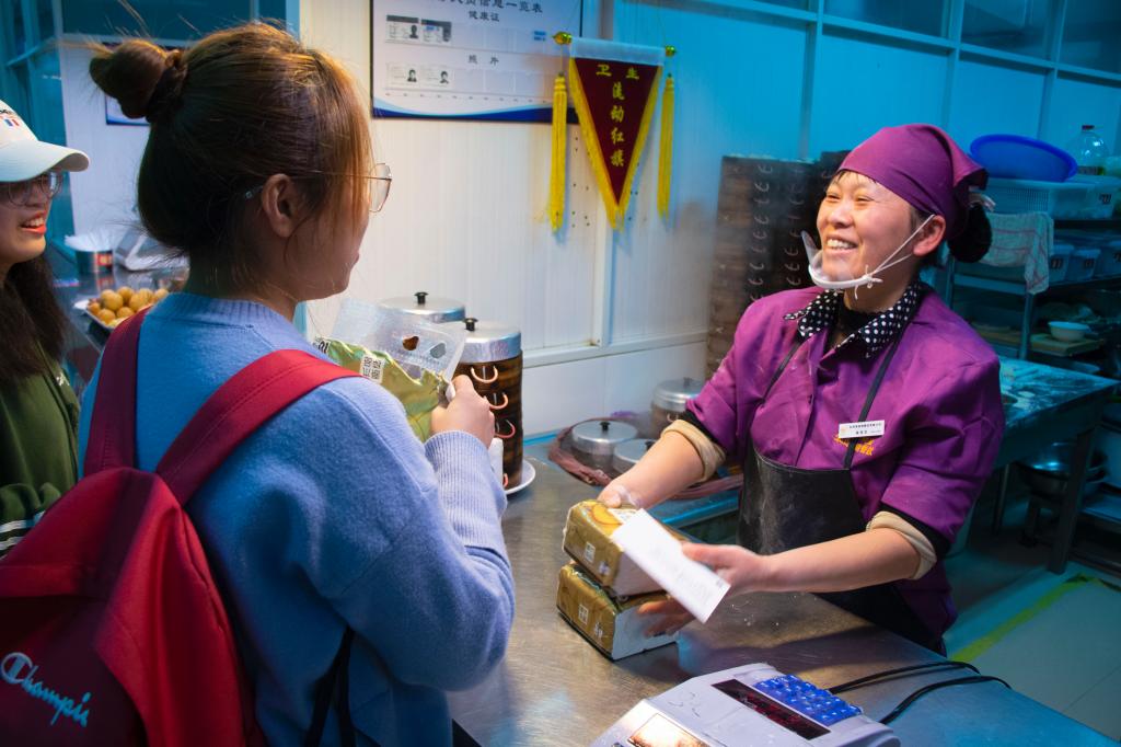 让我们把镜头转向食堂,一眼就看见叔叔阿姨们忙碌的身影。大家快速进入状态,生怕耽误他们的准备工作,赶紧将自己手中的感恩卡递去。在与阿姨的交谈中,我们了解到他们平日的作息时间,早上五点半起床,晚上八点下班,一天竟工作长达十个小时。知道了这些的你,还忍心对这些食堂工作人员皱眉吗?