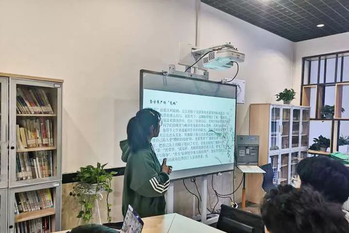 周丽华对同学们的分享作了点评和指导,她建议我们每阅读一本书籍都应该从不同的角度去分析理解,正如“横看成岭侧成峰”,从不同角度并运用不同学科的知识去读书,我们能够在思考中获得对书籍更甚高层次的理解。