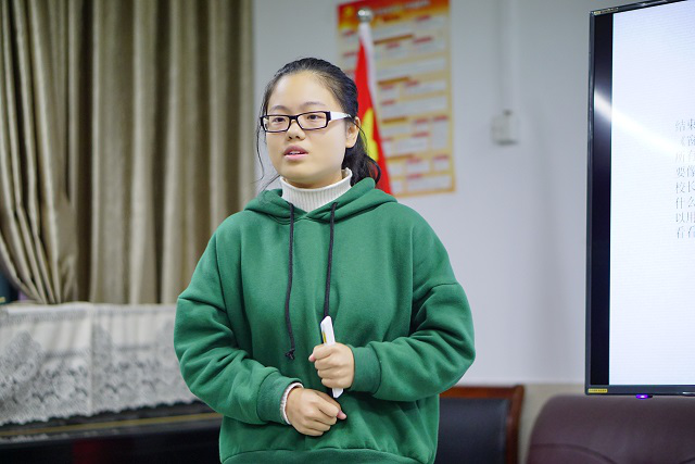 17小语2班的胡嘉婕给我们带来的是教育学的著作——夸美纽斯的《大教学论》。对于“把一切事物教给一切人”的学说,她提到三个关键词——自然秩序、学校和泛智论,并举例进行阐述。但她也辩证地指出作者在论述时没有摆脱宗教束缚,引证有些片面呆板的不足之处。