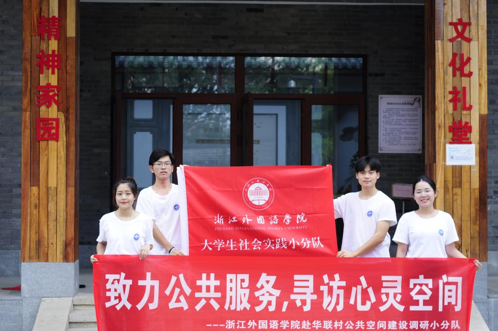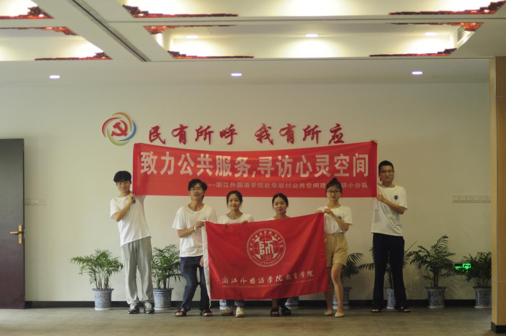 7月3日上午,小队成员来到本次调研地点之一——华联村。华联村坐落于杭州市西湖区三墩镇,先后获得浙江省卫生村、省级民主法治村、杭州市文明村、市园林绿化村等多项荣誉称号。刚一下车,小队成员们便被村子优美的绿化吸引住了:这里绿树成荫,花草遍地,队员们仿佛来到了一个大公园。首先,小队成员来到了华联村的文化礼堂,这是一栋三层楼建筑。“民有所呼,我有所应。民有所呼,我有所为”这样的标志语被挂在礼堂最显著的地方,向队员们展示着华联村村委的优良作风。“务实、守信、崇学、向善”是华联村村委与村民的共同努力目标。通过调研,小队成员了解到华联村文化礼堂中还有为村民开设的健身室、练舞室、图书馆等综合性设施,能够满足村民健身、娱乐、学习等多种要求。