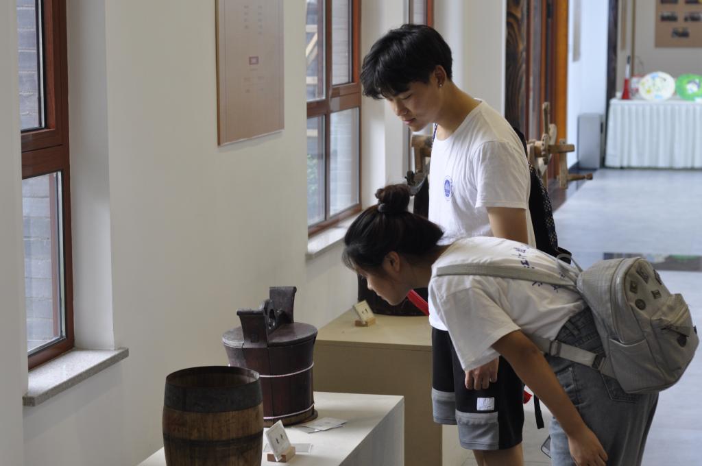 走进绕城村文化礼堂,小队成员便感受到了这里浓厚的农耕文化气息。据村委副书记王健介绍,绕城村的文化礼堂以“五星级文化礼堂”作为建设标准。所谓“五星级”,是指一园、两堂、四室、六廊。一园也就是村子的广场,公园;两堂,是指村子里的大礼堂与兰溪讲堂;四室,则是指图书阅览室、春泥计划活动室、文娱活动室、健身室;六廊,则分为村史村情廊、乡风民俗廊、崇德善贤廊、美好家园廊、特色文化廊以及时事政治廊。同时,王副书记还拿出了村子文化礼堂的活动记录册展示给小队成员们。他表示,村子内时不时会举办各种各样的活动,有亲子游戏、研学活动、学习、比赛等。而这些活动都会记录在这个活动记录册内。