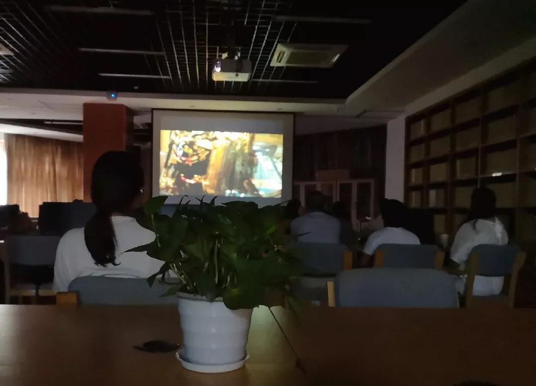 7月14日早上九点,电影开始,拉上窗帘,放下屏幕,这里就形成了天然的观影区,观影时,整个服务中心静悄悄的,所有人都在全神贯注地“看”电影,两位讲解员的口述也令人心潮起伏,他们时而温柔地娓娓道来,时而随着剧情而讲述得扣人心弦。观影结束,全体人员为他们这番精彩的讲述和背后的付出送上了热烈的掌声。