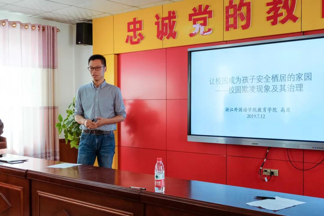 在讲座中,高原老师首先用数据说话,展现了近一年来我国发生的校园欺凌案件的数据统计,并列举了国内外发生的许多校园欺凌的现实案例,进一步既形象又深刻的从“什么是校园欺凌”、“校园欺凌有哪些危害”、“为什么会发生校园欺凌”、“防治校园欺凌学校教育何以作为”、“如何治理校园欺凌”等五个层次展开讲述。