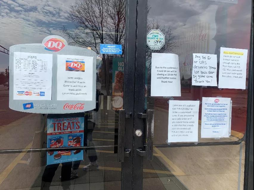 在River Falls的大街上,原本有许多餐馆,从墨西哥餐馆,到披萨餐厅,再到中餐厅,原本还有些热闹的街上,现在大部分店家都选择了关闭餐厅,仅有的几家还开着的餐厅也不再提供堂食,而是提供外卖等方式供应,以此来减少人与人的接触。