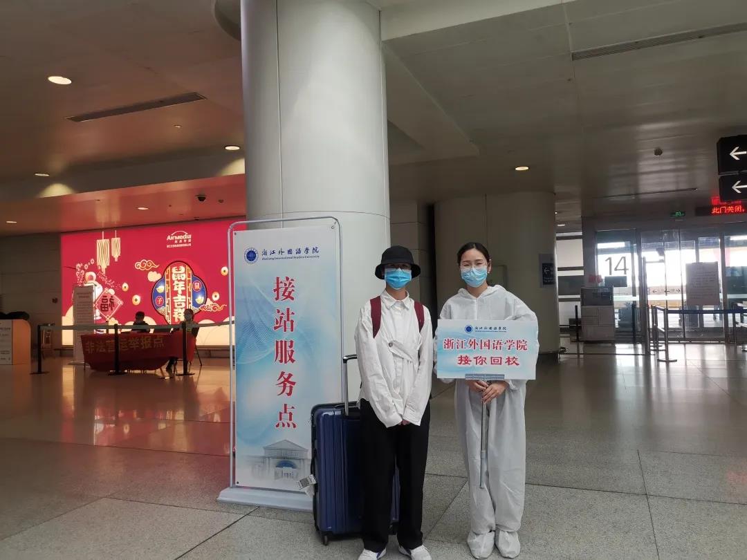 负责萧山机场的接机工作,主动报名防疫志愿者的教师们冒着高温、穿上防护服、扛着校牌,联系每一位学生进行精准接机。吴健和汪桔老师一天就要往返学校和机场两次,从清晨到日暮,辅导员杜颖和李亦唯也奔赴机场接同学们安全回校。