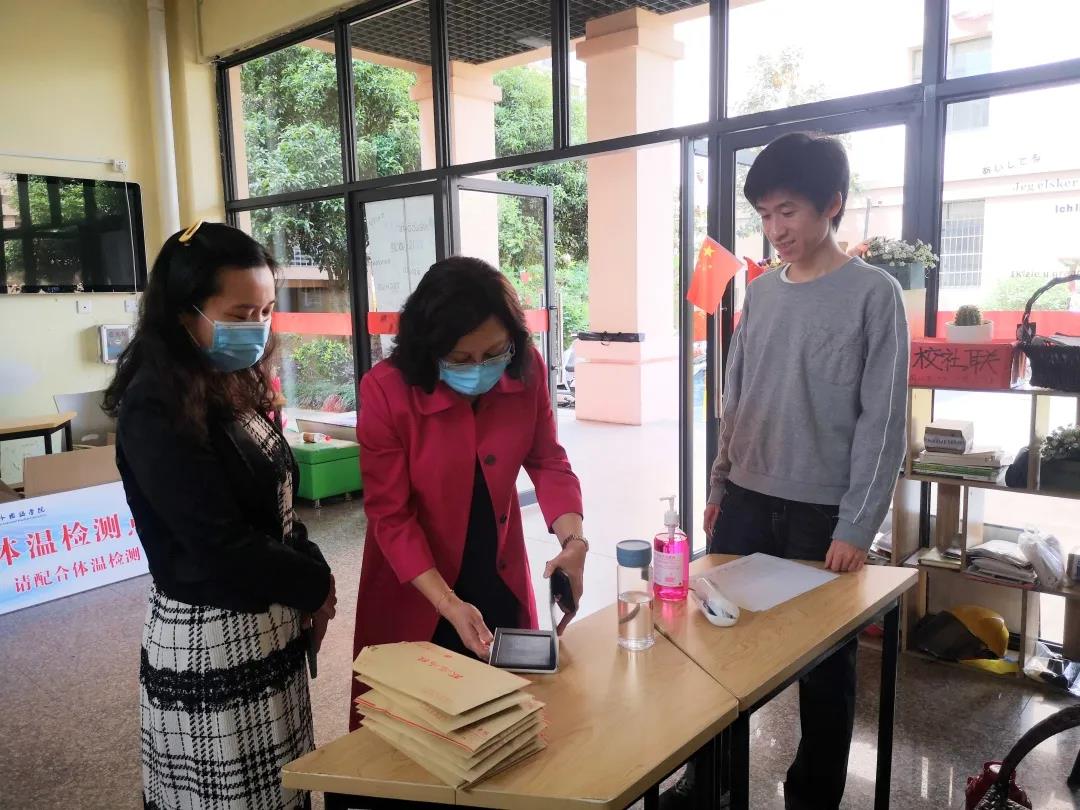 学院高度重视师生的生命安全与身体健康,学院疫情防控领导小组细分为了教育教学组、安全管控组、宣传组、后勤保障组,全院动员参与防控工作,只为了保障师生安全、平稳、有序开展学生返校工作。班主任一声声温馨提醒健康打卡,学工线的辅导员一遍遍在线上叮咛注意事项,并且亲手装好全校上千封发给毕业生的防疫袋。