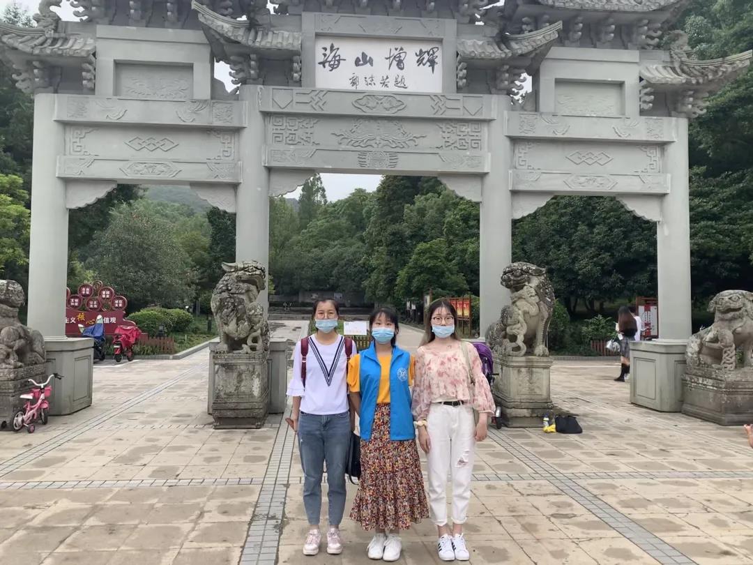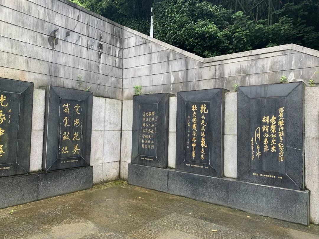 随后,队员来到了海山公园(舟山烈士陵园)和竹山公园(舟山鸦片战争遗址公园)。海山公园是舟山市境内主要公园之一,建有海山增辉广场、喷泉广场、观景台、姚公纪念广场、舟山革命烈士陵园等红色景点。公园内的陈列馆中展示了大量珍贵的历史照片、文献及物品,生动体现了从鸦片战争到解放战争及社会主义建设时期英勇奉献、无畏牺牲的舟山英烈,通过参观馆内的展品,实践队员对舟山本土英雄事迹有了清晰的认识。竹山公园于1997年6月建成,为纪念鸦片战争定海保卫战而设立,是浙江省爱国主义教育基地。在第二次鸦片战争中,英军入侵定海,4800余名清军将士奋勇抗击,前仆后继,大部分壮烈殉国,而竹山就是当年的主战场之一。沿竹山公园石阶而上,首先看到的是“忠贞齐仰”四个大字,近百位烈士长眠于此。半山腰上矗立着一座傲骨亭,旁边的大理石碑上,刻着舟山著名诗人方牧的《傲骨亭记》,赞颂抗将战士的英雄气概。顺着小路到达山顶,是“三总兵”纪念广场,三位将军的雕塑立在广场中央,使实践队员们感受到了中华儿女的魄力和精神。