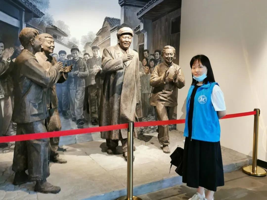 走进纪念馆,首先进入眼帘的是一座再现当时毛主席和小营巷群众亲切交流场景的铜像。顺着铜像往里走,小队成员们通过毛主席回忆录和墙上的众多资料,重温了这段温馨的红色历史。在这里,毛主席深入基层,通过谈心的方式关心民众疾苦。