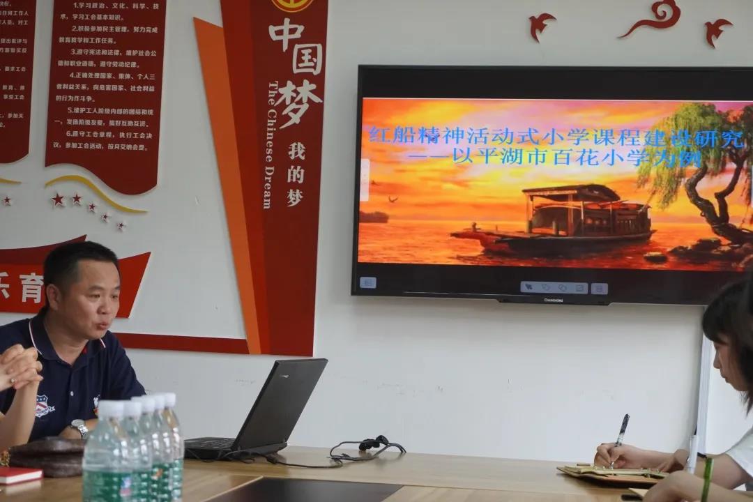 百花小学李校长从顶层设计层面展开介绍,重点讲述了从党建引领再到团建引领最后到少先队员建设的基本脉络。李校长在采访时说到:“红船系列活动是大家一起奋斗的成果,如何把这些活动做得更加的精益求精,也是我们在不断思考的问题。这些活动就像一颗颗珍珠,要把它制作成一串精美的项链,还需要不断地深加工。”