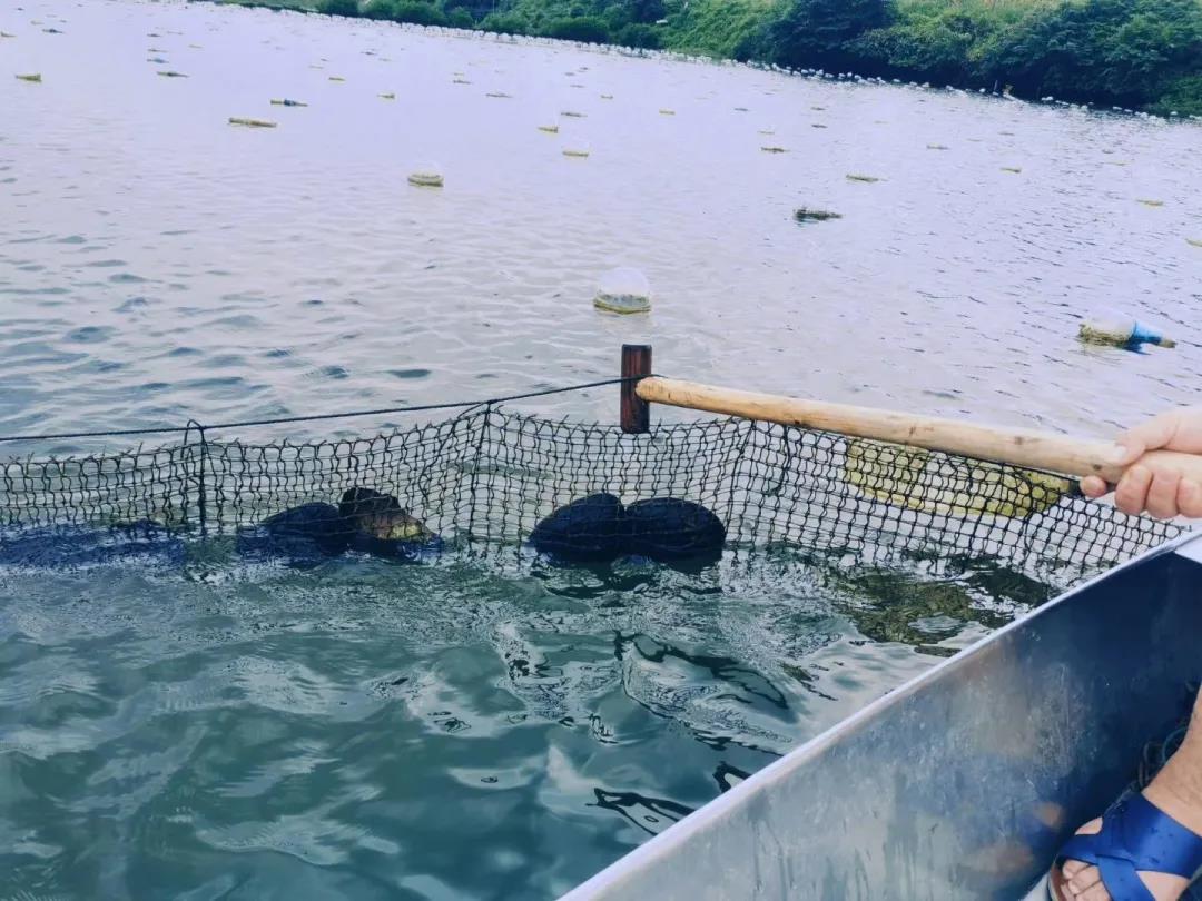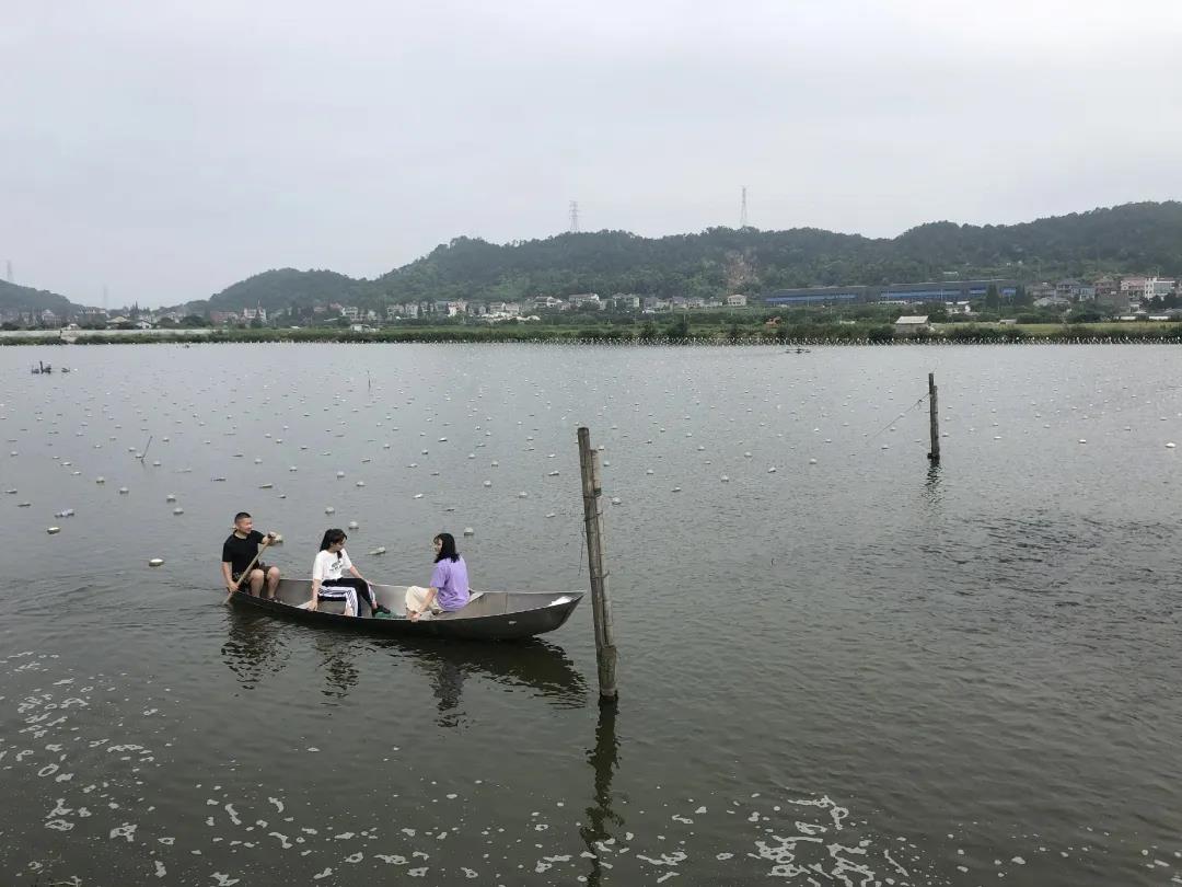 小分队还特地乘船参观了养殖基地,近距离地观察了珠蚌养殖。在詹先生的介绍下,我们感受到了科技的进步和百姓与时俱进的智慧:养殖基地除了养殖珠蚌外,还给一群鱼“安了家”,养殖基地采用现代化自动投饵机器,大大减少了劳动力的需求,提高了养殖效率。