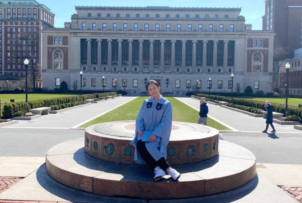 回望在浙外学习的日子里,她说最大的收获是交到了几个知心好友与对她成长路上帮助很多的老师们。在大学期间参加的由高歌老师带领的演讲队让她受益颇多,虽然那时每周/天的朗读训练、晨读等一系列活动在当时让人头疼,但也正是多亏了这些练习才收获了好听的英文发音和语音语调。另一位对她帮助很大的老师是现任浙外应用外语学院院长的姚明发老师。姚老师上课幽默风趣,为人随和,在论文指导时给了她很多的帮助;范潇潇后来申请大学的推荐信之一也是姚院长写的,她说没想到自己还会被哥大录取,估计姚院长的推荐信非常有用吧!