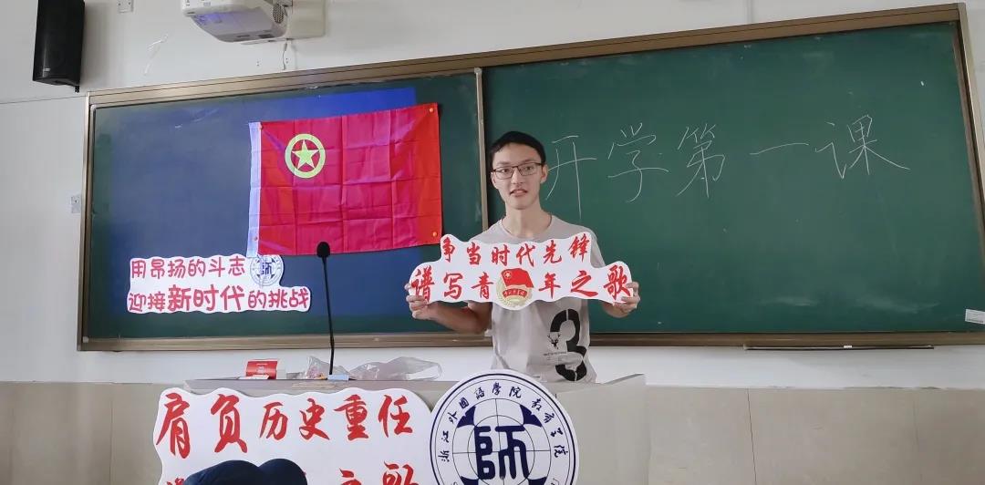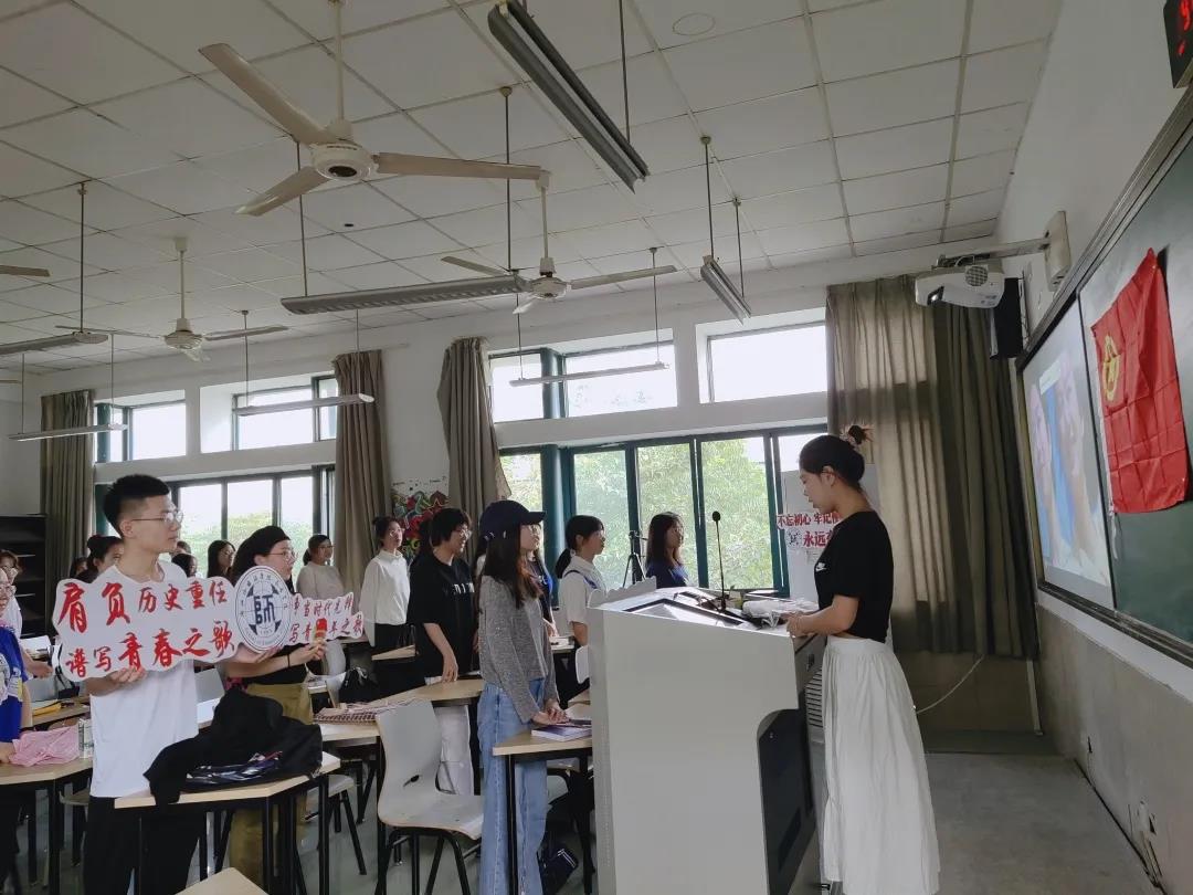在团支书徐凯佳的带领下,全体成员齐唱团歌并认真观看《高校开学第一课》。之后,全体成员围绕“永远跟党走”“投身家国情”“青春展风采”三个篇章展开了积极的讨论。