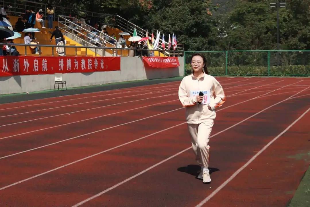 杨钧翔:很感谢前三棒的学姐们稳稳发挥,打下了良好的基础,也很感谢志愿者们和同学们的热情帮助和鼓励,没有他们我们很难有这样的荣誉。能为教院争光,我很高兴也很自豪。同时,我也会把锻炼提上日程,争取在明年的运动会上获得更好的成绩。