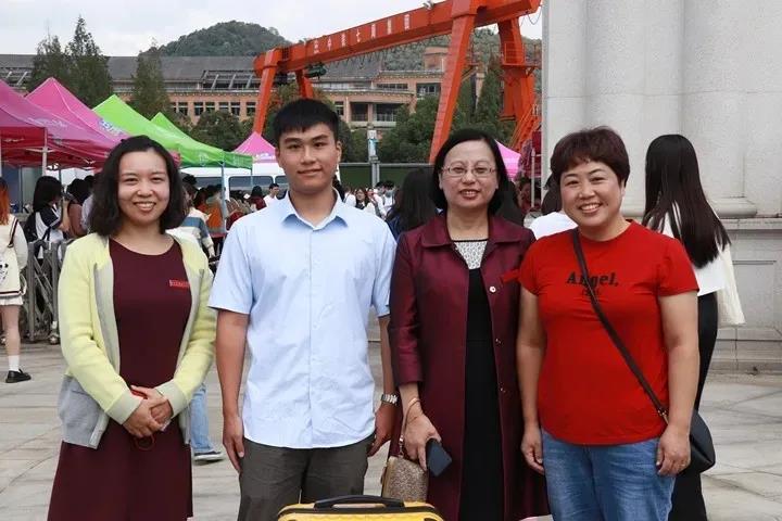 20学前1班学生任冠潮带着崭新的希冀来到小和山,扬起梦想,拉起帆,一颗年轻而热烈的心将要从“浙”里起航。而站在任冠潮身后的妈妈余利娟同样心潮澎湃。