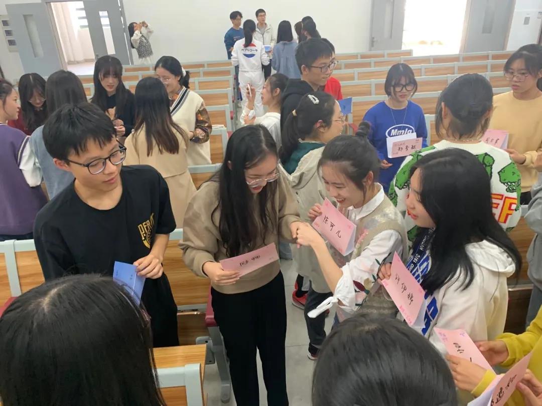 首先是“志同道合”环节。在这个过程中,所有同学事先在准备好的台签上写下自己的籍贯、爱好、部门等相关信息与其他同学分享。如果两个同学的台签上有相同的内容,就握一握对方的手,表示两个人“志同道合”。